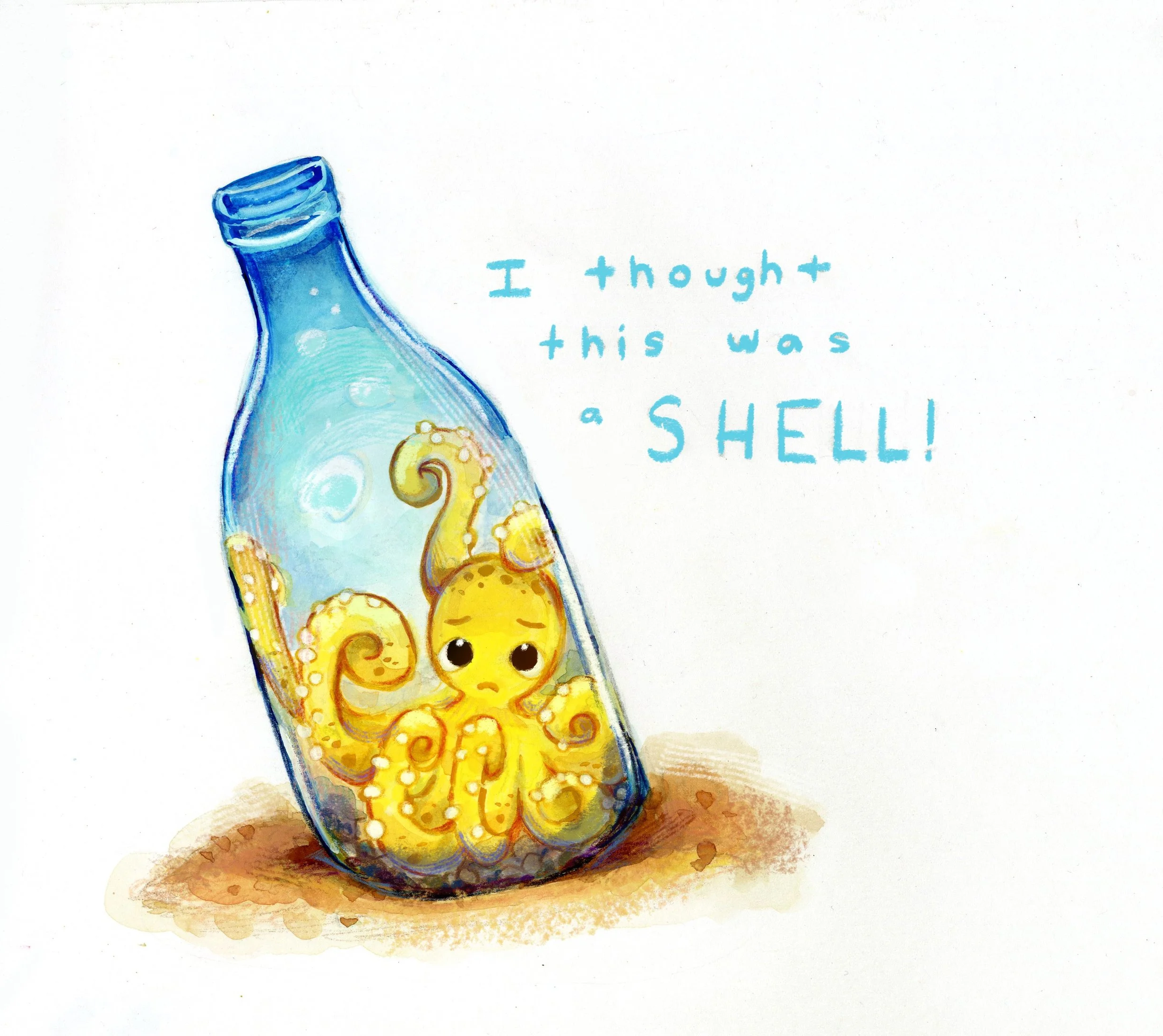 Stuck In A Bottle - Olipter Spot Illustration